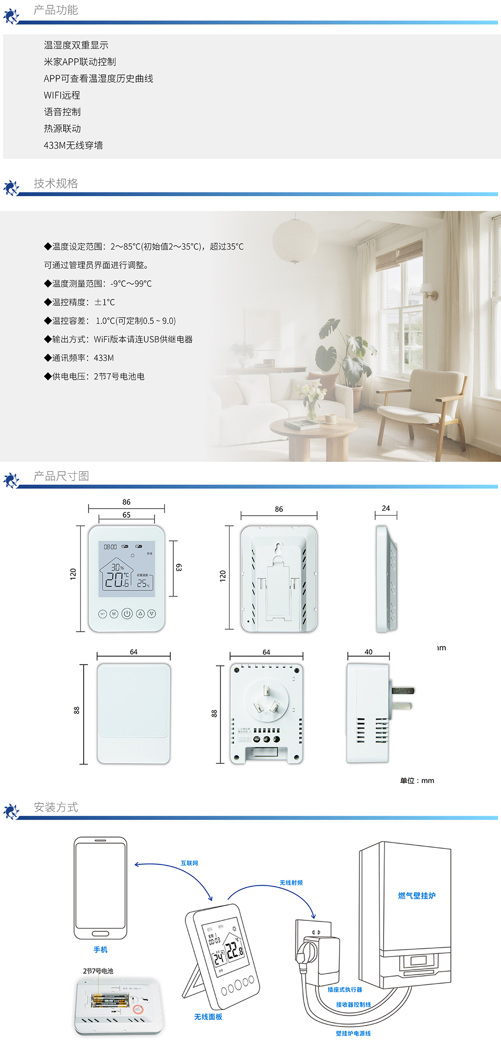 壁掛爐溫控器無線WIFI溫控器