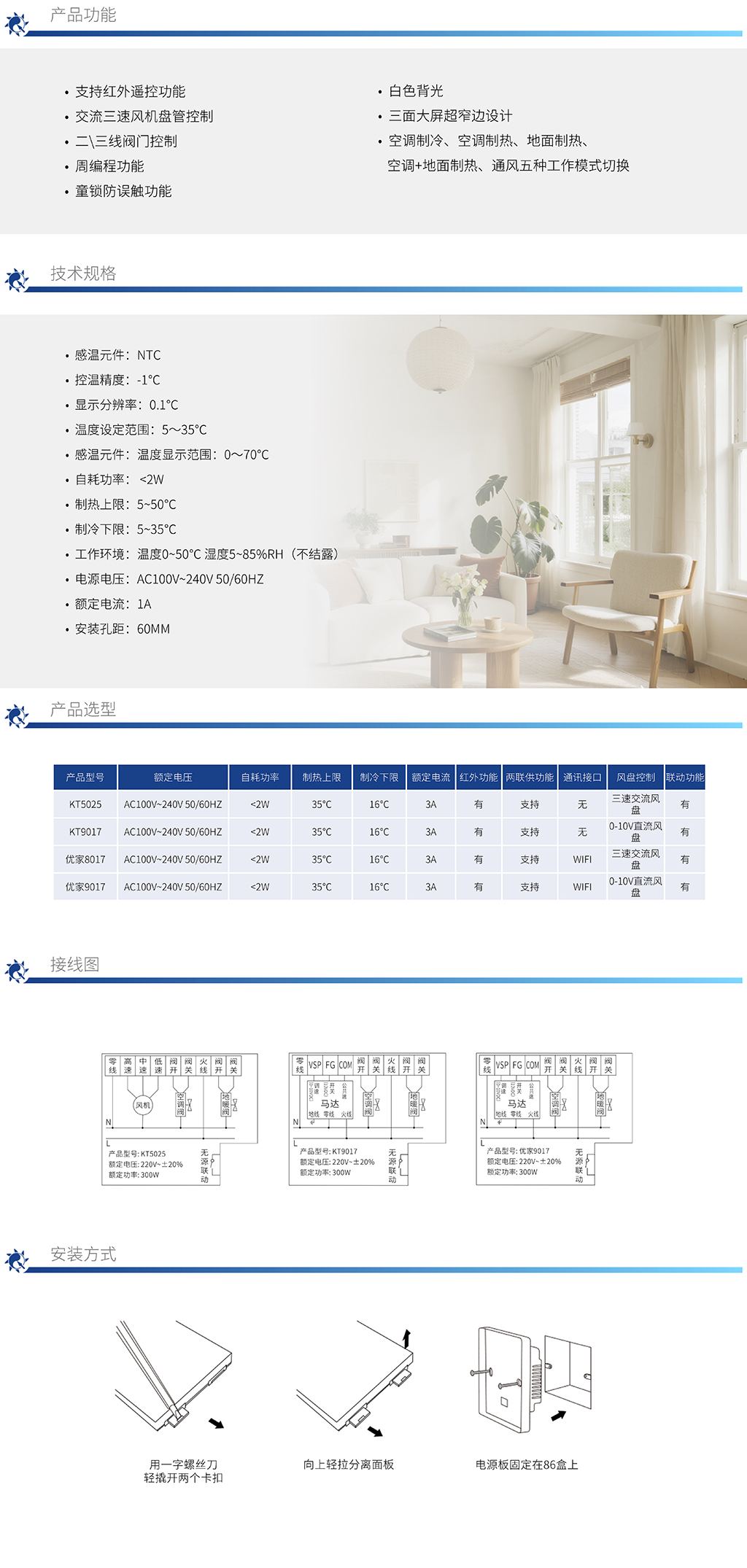 優家9017  WIFI版直流風盤按鍵溫控器